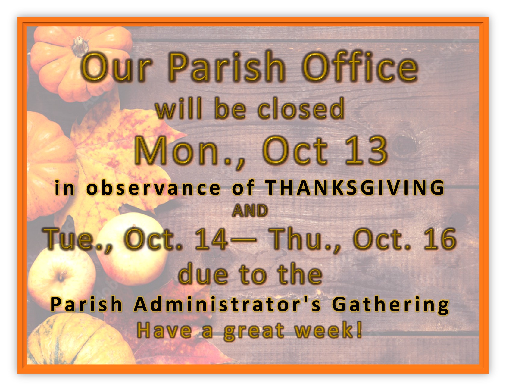- Envelopes: Offerings can be dropped off at the church during office hours Monday to Friday from 10:00AM to 3:00PM, dropped in the mail slot located on the Parish office door or sent to via postal mail.