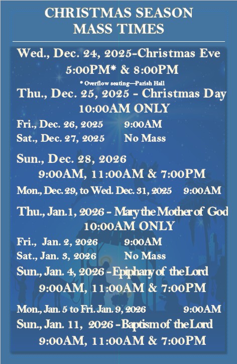 - Reconciliation:before all weekday and Sunday Masses or by appointment email Fr. John Garden